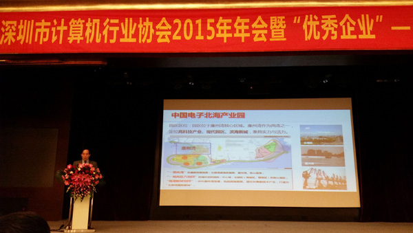 2016年1月7日,深圳市計算機行業(yè)協(xié)會2015年年會隆重舉行,受協(xié)會之邀,中國電子科技開發(fā)有限公司總經(jīng)理、北海市電子信息行業(yè)協(xié)會會長賀海華率中電科技旗下北海、西安、溫州園區(qū)參加盛會,賀海華與會員單位分享交流了中電科技建設(shè)產(chǎn)業(yè)園區(qū)板塊經(jīng)驗,介紹推介了各地方園區(qū)產(chǎn)業(yè)特點,衷心希望與各會員企業(yè)開展產(chǎn)業(yè)合作,歡迎來園區(qū)調(diào)研、拓展業(yè)務(wù),賀海華的精彩講解得到了參會嘉賓們的高度認同與熱烈回應(yīng)。盛會間隙,北海、溫州、西安園區(qū)相關(guān)負責人和意向投資企業(yè)進行了暢談,現(xiàn)場氣氛活躍,很多企業(yè)對中國電子投資建園的地區(qū)表達了合作意向,愿意進一步加強了解與合作,其中,北海以獨特的區(qū)位優(yōu)勢、產(chǎn)業(yè)政策、生態(tài)優(yōu)勢,備受多家深圳企業(yè)重點關(guān)注。