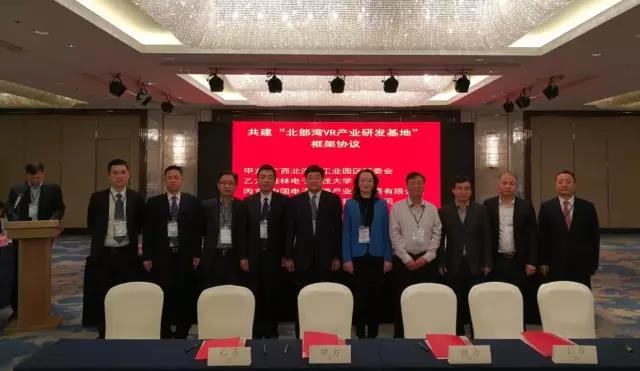 2017年1月8日,在深圳召開的“廣西電子信息產(chǎn)業(yè)桂電校友招商引資懇談會”上,在自治區(qū)工信委徐莉青副主任、北海市委常委、副市長曾子祥,桂林電子科技大學校長古天龍等領(lǐng)導見證下,桂林電子科技大學、北海工業(yè)園區(qū)管委會、中國電子北海產(chǎn)業(yè)園公司與北京幻鯨數(shù)字科技有限公司簽署合作協(xié)議,建設(shè)北部灣VR產(chǎn)業(yè)研發(fā)基地,標志著中國電子北部灣信息港軟件研發(fā)版塊進入新的發(fā)展階段。