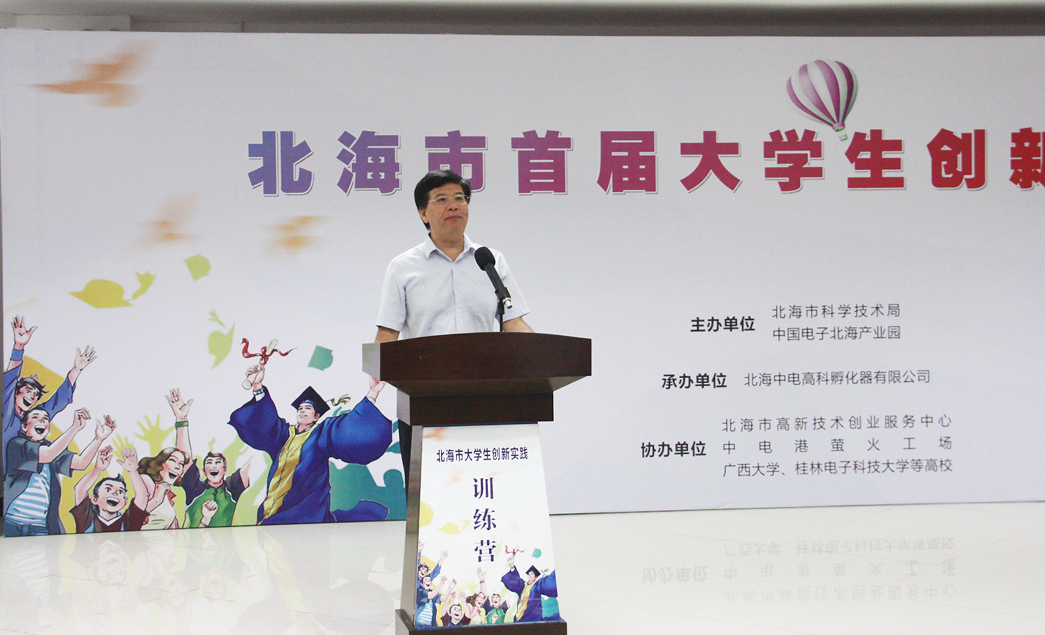 2017年8月15日,北海市首屆大學(xué)生創(chuàng)新實(shí)踐訓(xùn)練營(yíng)在中國(guó)電子北海產(chǎn)業(yè)園舉行開營(yíng)儀式,北海市常務(wù)副市長(zhǎng)陳維出席了開幕式,并宣布訓(xùn)練營(yíng)開營(yíng)。